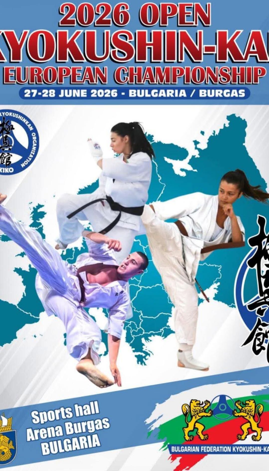 “2026 Open Kyokushin-kan European Championship ” Organizado por Shihan Rachev,  tendrá lugar los días 27-28 de Junio en el “Sports Hall Arena Burgas”, situado en  Stefan Stambolov, 79, 8008 Burgas, Bulgaria